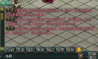 此区域为玩家聊天信息显示区及系统消息区。玩家通过切换频道,可对世界,队友,帮派,同地区,同战场玩家发言,亦可单独密语某个玩家。