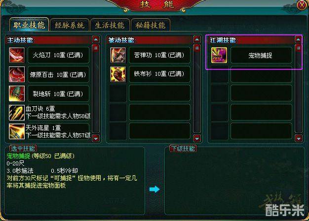 1、宠物捕捉:使用所学的宠物捕捉技能,可以捕捉宠物。宠物捕捉有可能失败,宠物头顶有“捕”图标表示该宠物可捕捉。