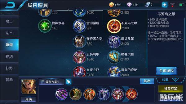 出装解析:这是一套半肉半输出的出装方案,既可以提升亚瑟的输出能力,也可以增强亚瑟的生存能力,更加丰富了亚瑟的团战作用。