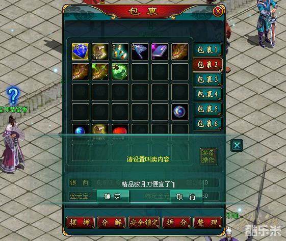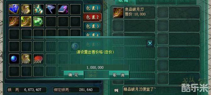 2、鼠标双击包裹内可交易的物品即可添加物品并设置物品出售价格。