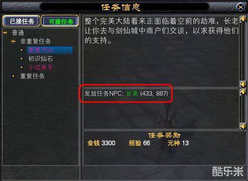 任务描述中通常会包含您所要去杀的怪、所要收集的物品、所要去找的NPC等等,这些信息会以绿色字体显示。您只要点击这些信息,自动寻径就会开启。如果选择的是NPC,那么自动寻径会将您带到NPC处。如果是要杀的怪物或者要杀某种怪收集的物品,自动寻径会将您带到该种怪物聚集的地区。如果是位置地点,自动寻径也会将您带到合适的位置。