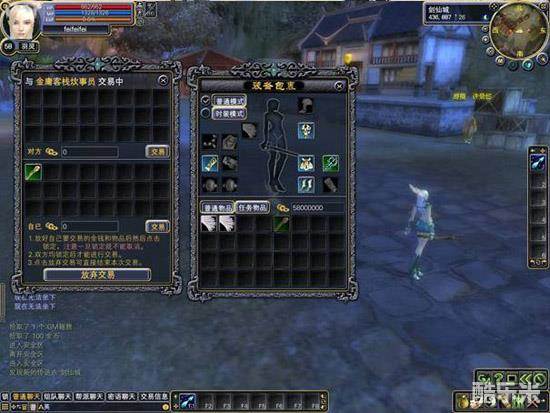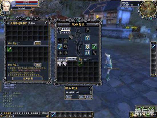 可叠加的物品直接将包囊的该物品全部放入到交易窗口内,如要进行数量性交易,需按住ATL+鼠标左键进行拖拽。将物品拖拽到交易窗口内后,物品在包囊内显示为暗灰色,即不能对交易窗口内的物品进行其他操作,如要取回交易物品,在交易窗口内双击该物品,该物品就会回到包囊内,呈现彩色可以点击自己方的金币图样进行金钱交易,输入数值后确认即可。任务物品不能进行交易。