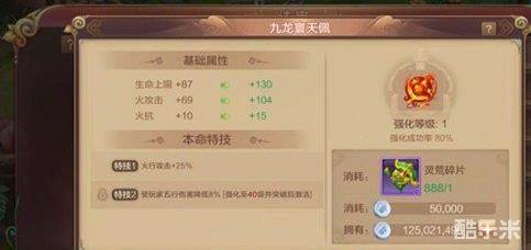 不同五行的法宝提升法宝技能等级需要消耗相应五行的摘星花,星数越高技能等级越高,装备3、5、7星的全攻或者全防法宝,拥有两种五行圣绝技能。