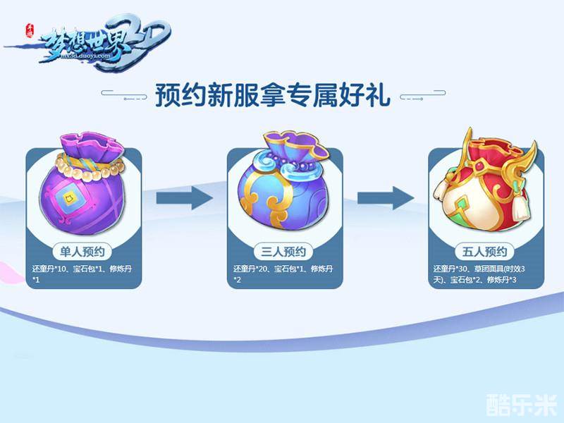 7月27日12:00《梦想世界3D》新服“盛夏光年”正式开启!预约新服就能拿到专属好礼,少侠可以单人预约,或者叫上伙伴们进行3人预约、5人预约,预约的人数越多礼包越丰厚哦!除了预约好礼之外,新服开启之后还有多重福利等着大家,让少侠在梦想大陆如虎添翼!