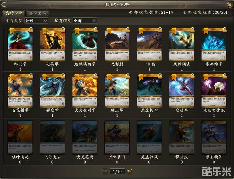 卡片会按照一定的主题集成各式套卡。当收集齐全套套卡时,就可以在卡册内兑换价值不菲的宝物,更有绝世武林秘籍等你来换