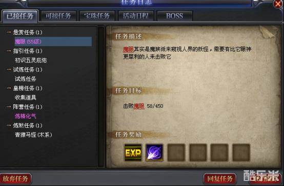 每日任务系列之悬赏任务,悬赏任务是魔侠传中的每日任务,玩家接取这个任务的时候可以用令牌道具进行任务品质刷新,品质越高那么经验奖励就越多,是玩家前中期阶段升级的主要动力。
