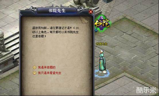 书院答题,每天一次的活动。玩家答对20道题后会获得经验的奖励,运气好的话会有10倍的高额奖励,这些经验奖励都是玩家在平时很难得到的。万一运气爆发一波10倍奖励,足够半天的努力成果了。