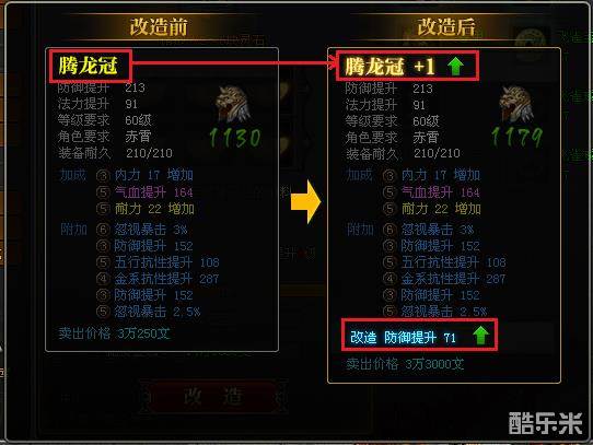 装备改造可以提升装备的改造等级,大幅增加装备的基础属性,装备的改造等级越高,装备的威力就越强。装备改造性价比极高,强烈推荐。