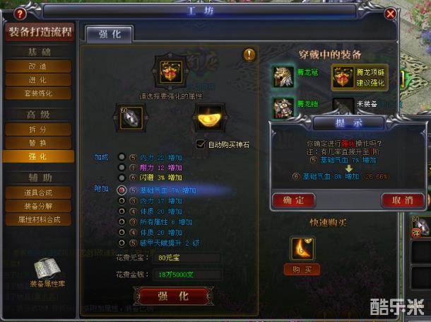 注:装备改造有成功率,推荐在改造的时候,购买器灵玉,以达到保底的效果(装备改造等级不会低于器灵玉等级)。