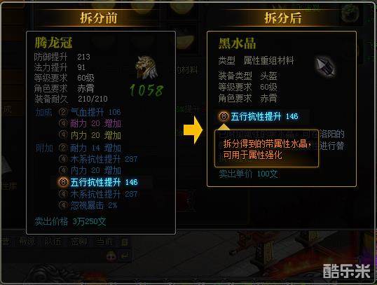 属性强化有两种方式:一种是用元晶替代水晶的快捷强化,另一种是先拆分(拆分后面会讲到)后强化。