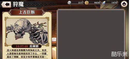 小编今天要说的是螺旋境界线游戏中的狩魔系统,简单点说这个系统是需要玩家加入公会之后进行的操作,玩家在公会里面必须要跟怪物进行战斗,这个怪物就是上古巨骸,它的骷髅非常大,但是没有人知道原因,很多挑战它的人都没有活着回来,它每天都会在公会中定时出现。玩家想要仅凭个人力量是不能够战胜它的,这时候就需要和小伙伴们组队前去挑战。