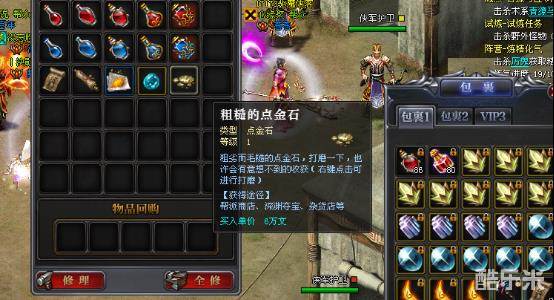 接下来这个赚钱方式就是靠个人的经验了,没错说的就是点金石。玩家可以在阵营中立地图商人这里购买点金石。一个点金石的价格为6w,当然这个价格算是比较高的了。不过每个点金石打磨都有一半的几率成功和失败,成功后点金石卖出的价格会翻一倍,最高可达520W游戏币。运气好的话一波暴富也说不定啊。
