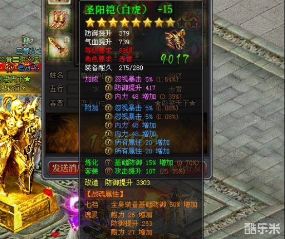 说完了土豪战士的武器之后来看一看衣服这类防具,因为防具三件套基本上都是一样的,那么就以衣服为例进行讲解。土豪战士在防具上也是以强化攻击力为主。除了攻击力之外,防具上主要是有忽视暴击和防御这两个属性来选择,前者是为了抵抗其他玩家的爆发力,经常PK的话推荐玩家选择这个;如果是没有什么好选择的防御则是最常规的选择。