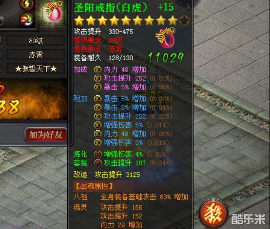 戒指是土豪战士的另一个核心装备,因为戒指也是属于攻击类型的装备。戒指上的属性主要是以强化暴击、伤害增幅等为主,基础攻击都已经有武器和防具来提升了,不用戒指浪费珍贵的属性位置给攻击上。