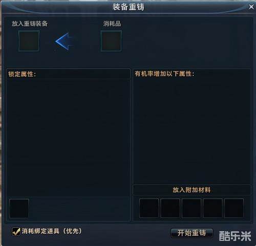 右键点击背包中的装备,放入操作界面中,点击右下方的“开始重铸”按钮,进行装备重铸。