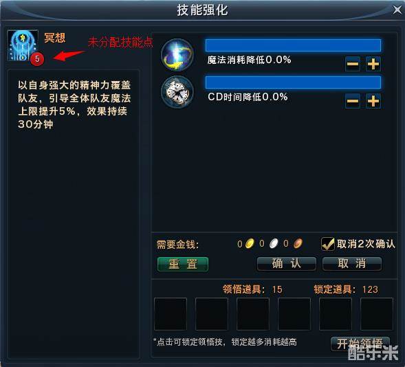 注意,强化技能是会消耗金钱的,每次确认时都会弹出消耗金钱的提示,进行2次确认。如果您不需要再次提示,您可以勾选“取消2次确认”。