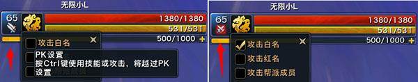 您还可以通过按住Ctrl键对他人进行强制PK。开启PK后,战斗状态图标也会发生变化。