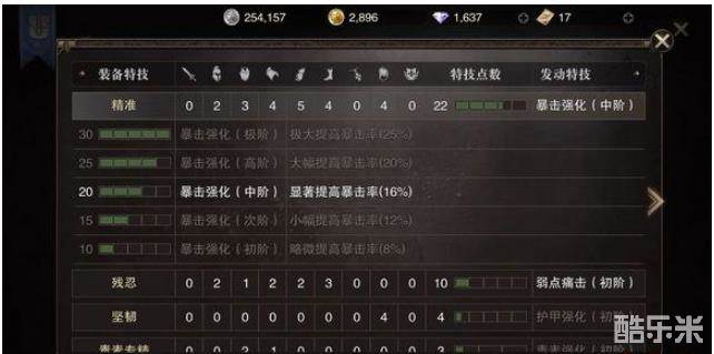 残忍特技 点数10点。 激活了弱点 (初)。 这里需要注意的是,初级是最低激活要求。