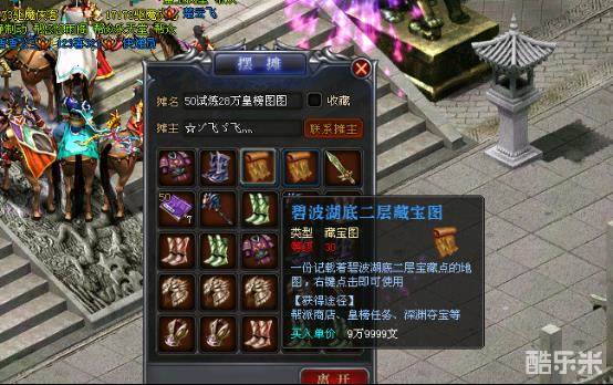 藏宝图主要是通过帮派商店、活动等方式获得,皇榜任务奖励的概率比较低,所以就不予考虑了。藏宝图玩家可以根据宝图的品质来定价,金色宝图就摆3卡的价格,普通宝图则是市场平均价。金色宝图能够产出一些意想不到的装备、道具等,所以不要小瞧了金色品质的宝图。