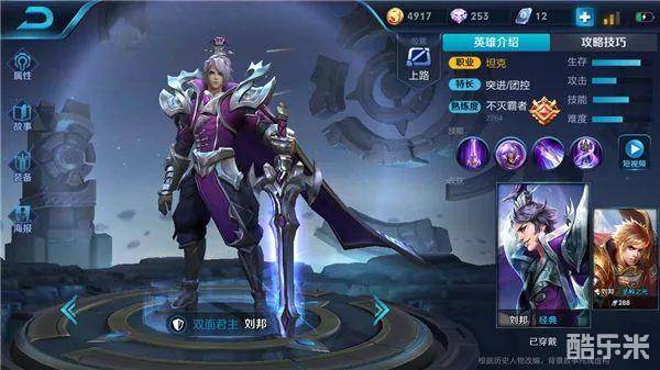 刘邦的职业定位为坦克,走辅助位的话可以凭借自身的支援能力照顾到其他路的队友,走上单位的话则以单带为主,等对方分人防守时刘邦在突兀传送到队友身边,形成以多打少的局面。而今天就是为大家带来刘邦的单边路玩法。