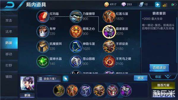 六神装:抵抗之靴、红莲斗篷、魔女斗篷、不祥征兆、反伤刺甲、霸者重装