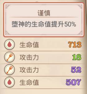 不同性格带来不同属性的50%的加成。 堕神性格带来的buff直接作用在堕神的属性上面,然后再作用于佩戴该堕神的飨灵身上。
