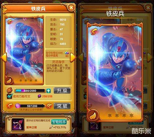 铁皮兵,作为一名改造人,全身依靠高科技打造而成。并且使用的打造材料是世间最坚硬的物体,而且这种材料十分轻盈,完全不影响机动性。这使得铁皮兵一出世就有着S级魔宠的实力,在魔宠阵容中,他一直名列前茅。技能“灵活身手”可以在己方被暴击后,有几率百分百闪避掉敌人下次攻击。