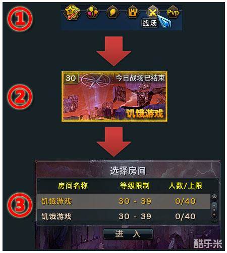 活动参与:活动开启后,点击相应推送按钮或在主界面上方,点击“战场”按钮,选择“饥饿游戏”活动。挑选适合自己等级的房间参加活动。