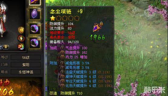 在饰品方面,这个除了加成这三个属性里可以根据自身的需要进行调整。喜欢攻击高的就改造成内力、攻击力提升和防御,想要平衡的就是内力、防御和气血。附加的六条属性基本上都是强化天赋等级的。
