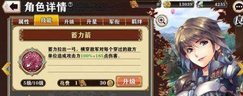 蓄力箭,蓄力拉出一弓,横穿敌军对每个穿过的敌方单位造成攻击力100%+185点伤害。