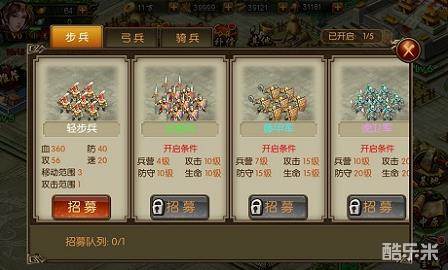 个人科技的提升还能帮助主公们解锁更高级的兵种!比如轻弩兵就需要攻击、生命、防御三大技术达到5级,而更高级战斗力更强的骑兵则需要这三项技术分别达到20级。想要建立强大的军队,没有一点点技术看来是不行了。所以说,手握黑科技才能痛快打天下。