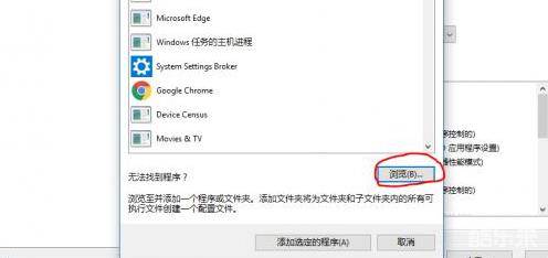 2. 选择“ 程序设置 ” 并找到Fortnite。如果找不到,点击添加并在那里找到它。(要在这一步找到Fortnite,必须是要至少运行过一次游戏。如果没有运行过游戏,就运行游戏然后再关闭游戏就能找到了)如下图: