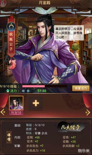 子嗣通过付费道具的数值可以增加调优次数,多次学习可以让子嗣的数值提升到极限,当玩家的子嗣学习能力提升到了极限,成年后的小皇子必然是天赋惊人。所以玩家想要得到极品的子嗣数值就需要延长培养周期、增加培养次数。