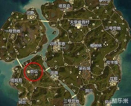 绝地求生全军出击祭坛在右边,刚好在两座桥的中间。祭坛附近没有什么房屋,所以这里的资源比较集中。这里跳的人并不是很多,不过因为这里资源集中所以打起来非常惨烈。