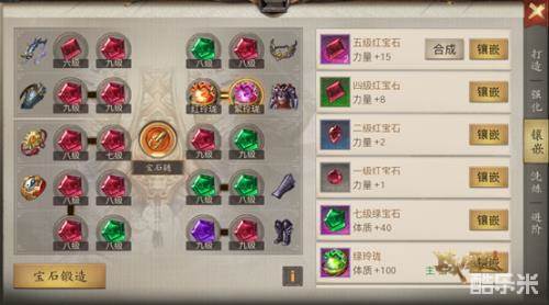 角色等级达到69级的将军,可以开启“宝石链”系统,“宝石链”即武器、饰品、防具三个区域的宝石之间,可以形成链子,将军可以根据情况,自由决定镶嵌宝石的策略,与其他将军拉开战力差距。如对现有的宝石链配置策略不满意,可以消耗6级任意宝石对宝石链进行重铸。