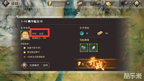 在《王者大决战》中,普通的副本章节中,点击副本后会有相关的副本信息,而守关的BOSS也就是武将,副本的图标会有特殊标示。