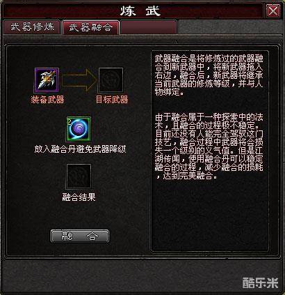 玩家在《隋唐演义》中修炼武器之后,如果获得更好属性的武器,可以通过武器融合系统将旧武器的等级融合到新武器上。
