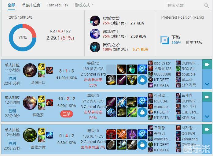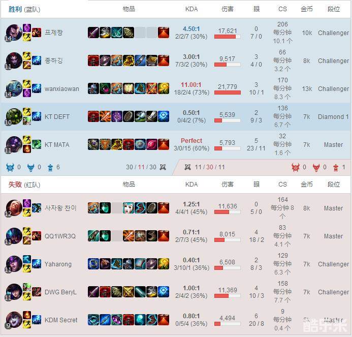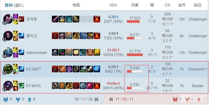 昨天夜里,KT下路Deft与Mata进行了欢快的二人车双排。几局游戏过后二人均是以胜利而告终。看来昨天的二人车还是比较稳的。