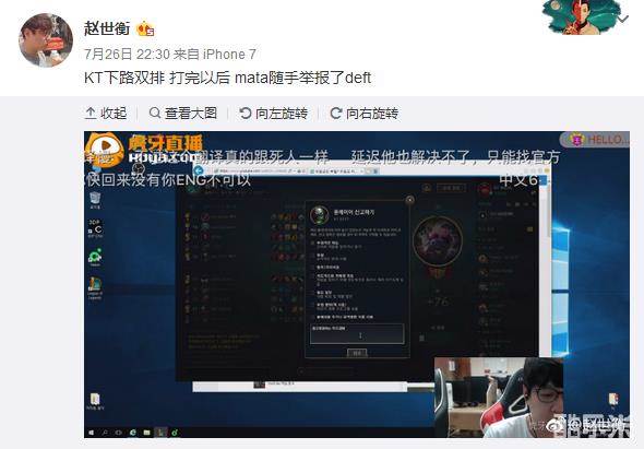 而其中一局对战,即便胜利了但是Deft却遭到了Mata的举报。