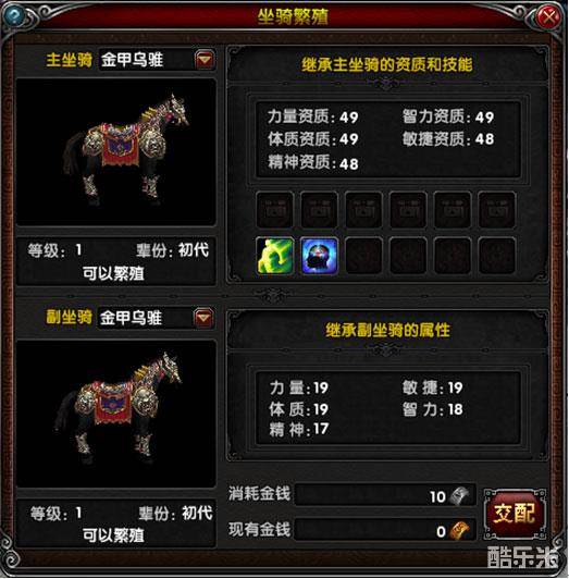 8)2代坐骑,继承了主骑乘的资质属性+5、技能,继承副坐骑基础属性+5。