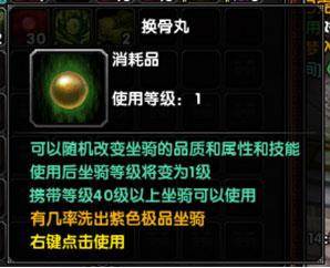3、换骨有一定几率洗出紫色极品坐骑,紫色极品坐骑为二代马不可繁殖。