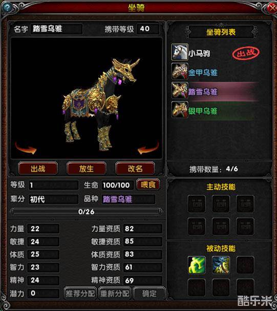 3)当坐骑等级超过玩家5级后,将不再获得潜能点。