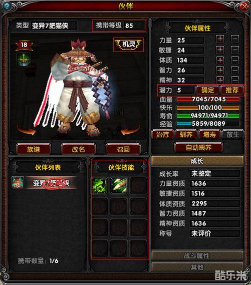 伙伴提升等级后,会获得潜力点,玩家可以根据伙伴的情况自由分配潜力点。