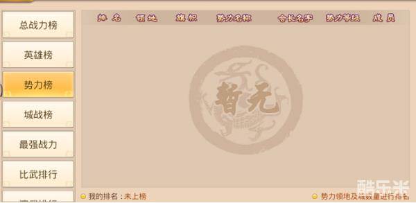 势力榜:是根据玩家帮派所占领的城池数进行排名。与帮派等级无关。
