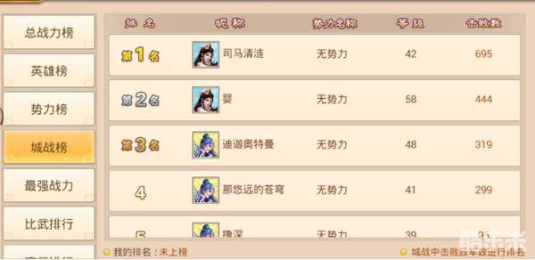城战榜:是根据玩家城战中所击杀的敌军数量排名。