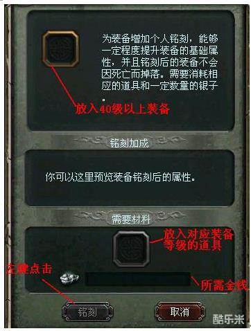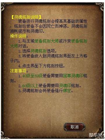 1、40级至59级装备需要用“国传灵魂印”铭刻;