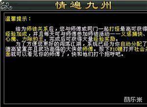 当角色到达10级时,系统将根据当前的情遍九州的寻徒列表中的人数,按一定规则分配师傅。