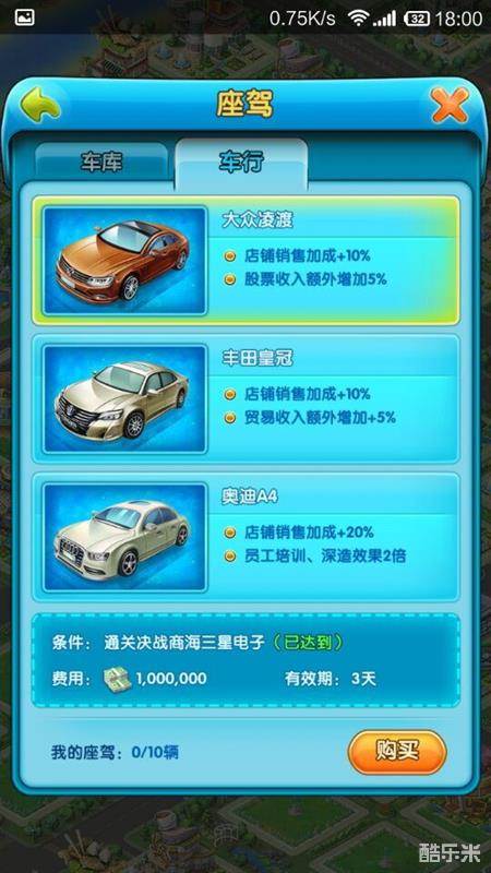 5.座驾:一台必备的mini cooper,以及一些便宜的车可供选择,根据自身情况选择合适的座驾,可以提高预计收入