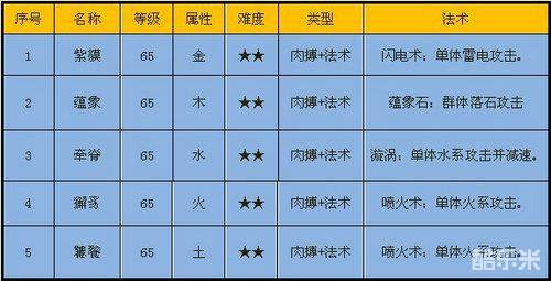 1、开启天劫谷中的紫貘封印、蕴象封印、牵脊封印、獬豸封印、饕餮封印,杀死紫貘、蕴象、牵脊、獬豸、饕餮五神兽;