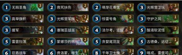 我们的前期曲线不太好,所以带上了相当多的防御卡牌。同时因为我们很容易低费下场大生物,所以带上了不少赋予嘲讽的单卡。